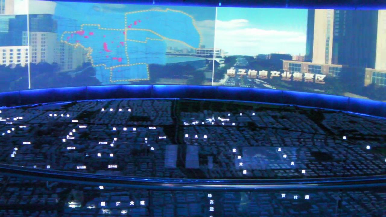 3、科技化:弧幕數字沙盤的科技含量可以說也是很高的,弧幕投影、聲光電、融合、以及三位動畫等的制作讓整個沙盤看上去更加的先進有科技感。